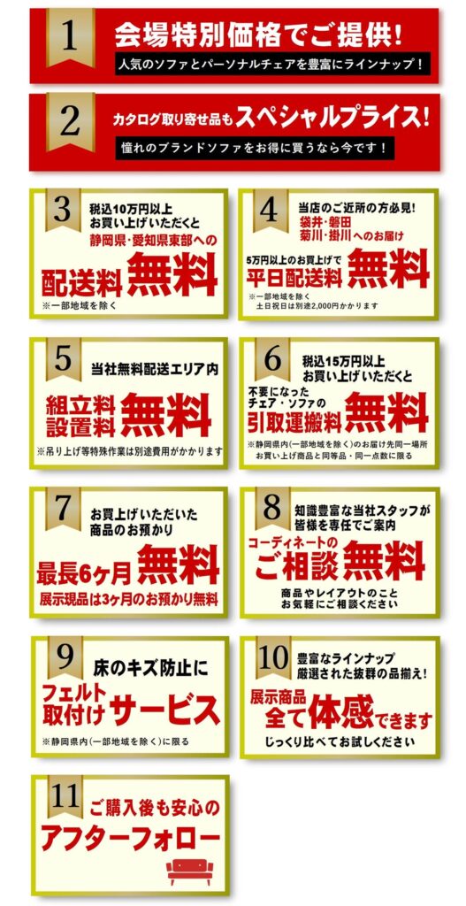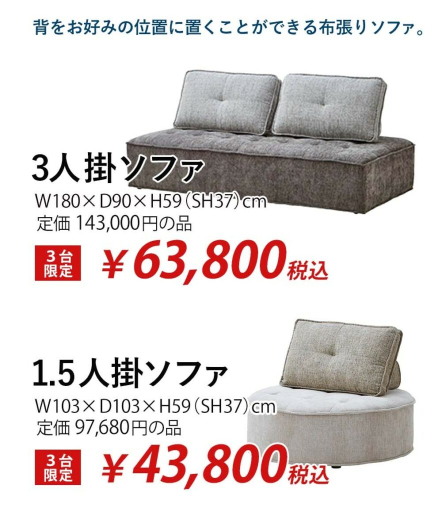 プレミアムソファも特別価格!信頼の国産家具ブランド「カリモク家具」など、たくさんの人気ソファを展示しています。あなたのお気に入りを手に入れるチャンスです