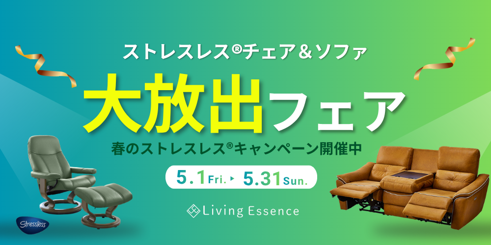5月1日~5月31日の期間限定、「ストレスレス®チェア&ソファ 大放出フェア」を開催します。